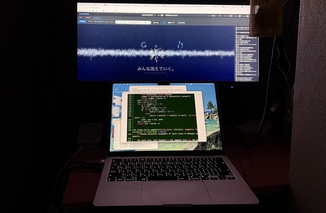 今回、ステム分離も日本語ASRも文字列アラインメントもMP4変換も、全部ローカルで、APIキーなしで、回りました。Apple Silicon と量子化と、ちょっとした泥臭い試行錯誤があれば、それは届く範囲にあるんですよね。