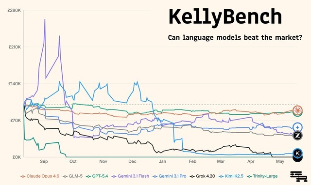 最も惨敗だったのはxAIのGrok 4.20とAcree Trinityで、いずれも3シーズンすべてで破産するギャンブル下手っぷりを披露してしまいました。