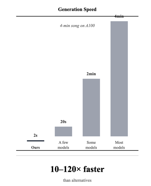 前モデル「ACE-Step」では、10秒の短いループから最長10分に及ぶ楽曲生成、ボーカルトラックからのBGM自動生成、カバー作成など、多彩なコントロール機能が利用できます。50以上の言語の歌詞に対応しており、日本語もその中に含まれています。A100環境ではフル楽曲を2秒未満、RTX 3090でも10秒未満で生成できるとしています。