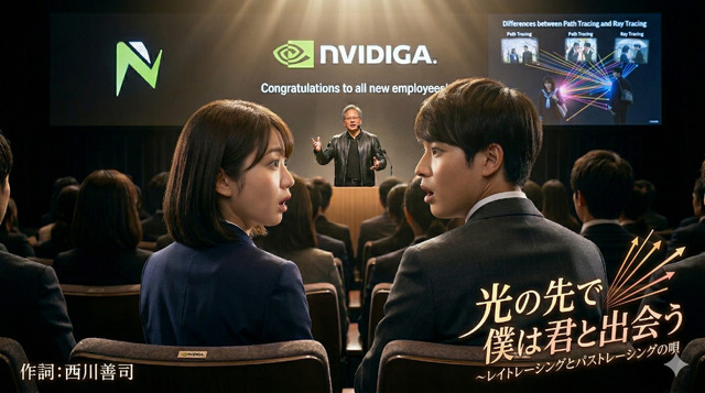 今回の「歌うテックニュース」では、レイトレとパストレを、人間同士の出会いに喩えて、ラブソングっぽい青春ソングに仕立ててみました。