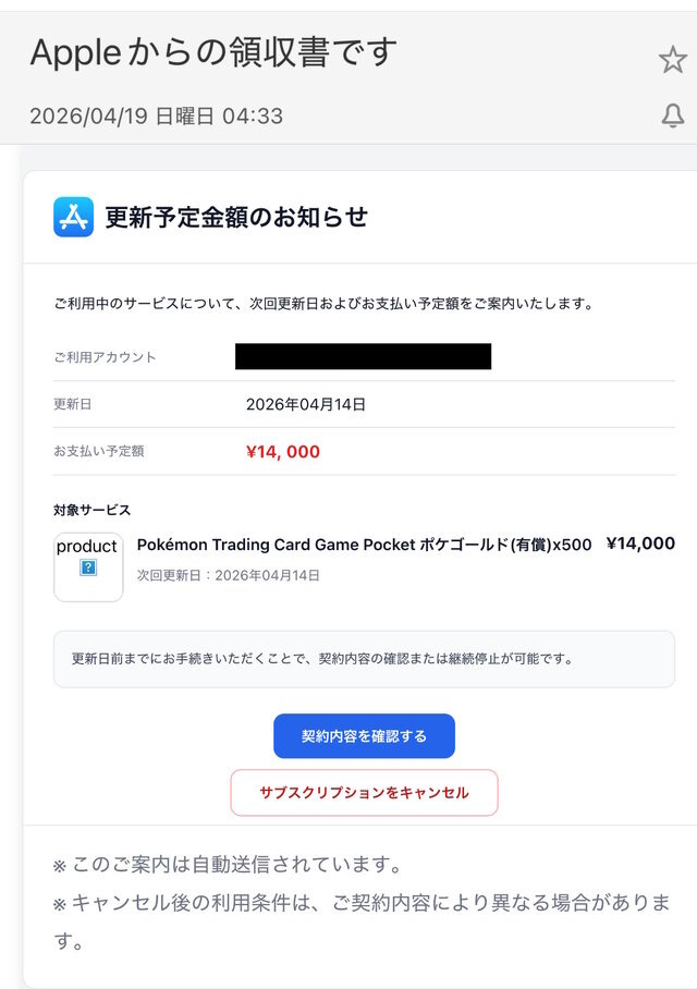 報告によれば、不審なメールの特徴は「App Storeでの『ポケポケ』の決済完了を装った領収書メールが届く」「身に覚えのない購入内容が記載されている」「購入履歴の確認や返金手続きを促し、メール内のリンクをクリックさせようとする」などです。