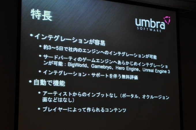 世界の様々なゲーム開発ミドルウェアを国内向けに提供するIGMは、秋葉原UDXにて最新ミドルウェアセミナーを開催。同社が提供するミドルウェアのうち、Emergent社の「Gamebryo Lightspeed」、Umbra Software社の「Unbra」、Scaleform社の「Scaleform GFx」を紹介しました