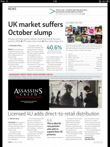 以前、 「Develop」のデジタルエディション(PDF)が無料で公開されている という記事を掲載しましたが、姉妹誌でゲーム流通関係を扱う「MCV」ではiPhoneやiPadのアプリが公開され、こちらも雑誌と同じ内容を閲覧することができます。PDFのデジタルエディションも無料で公