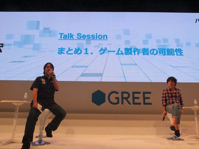 東京ゲームショウ2012、ビジネスデイのGREEブースではクリエイターやゲーム業界の識者を招き、ソーシャルゲームやスマートフォンゲームの展望を議論する「ビジネスゲームセッション」と題されたイベントが開催されました。