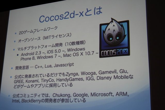 【GTMF 2014】近年採用が増えている2Dゲーム向けフレームワーク「Cocos2d-x」 2枚目の写真・画像