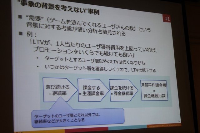【CEDEC 2014】データの見方を間違えて失敗した5つの例・・・DeNAの分析担当者が語る 10枚目の写真・画像