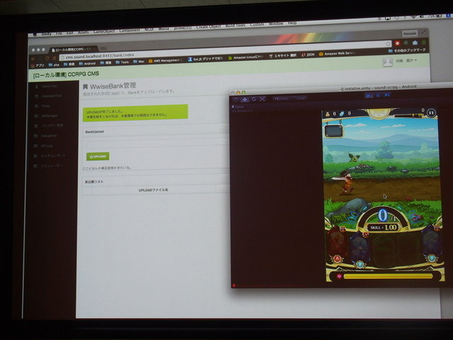 『クリスタルファンタジア』のサーバーエンジニアをつとめるKLab株式会社の内海恵介氏と、同じくサウンドクリエイターの磯田泰寛氏は「Wwise+Unityで作るモダンなモバイルゲーム運用」と題して、商用展開済みのゲームにプログラマを介さずに、ダイナミックに実機上でサ