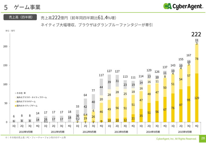 サイバーエージェント、2015年度通期はゲーム事業好調で過去最高益・・・足元も好調 2枚目の写真・画像
