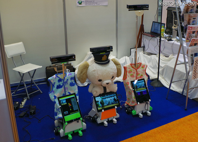 左から「Doctor Robot」「孫ロボット」「テレベッド」。全てKinectセンサーを中核として構成されている(撮影:防犯システム取材班)