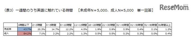 1週間のうち英語に触れている時間
