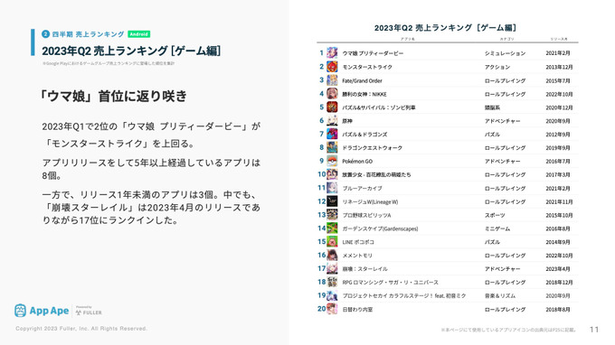 『崩壊︰スターレイル』が新作ながら売上17位に―フラー、「四半期アプリ市場レポート 2023年Q2編」を公開 3枚目の写真・画像