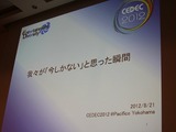 CEDEC 2012の2日目午後に開催された「我々が『今しかない』と思った瞬間」はディー・エヌ・エーのスポンサーセッションとして、同社に最近転職した二人の開発者が登壇しました。スポンサーセッションとは言え、モデレーターをジンガジャパンの松原健二社長が務めるなど